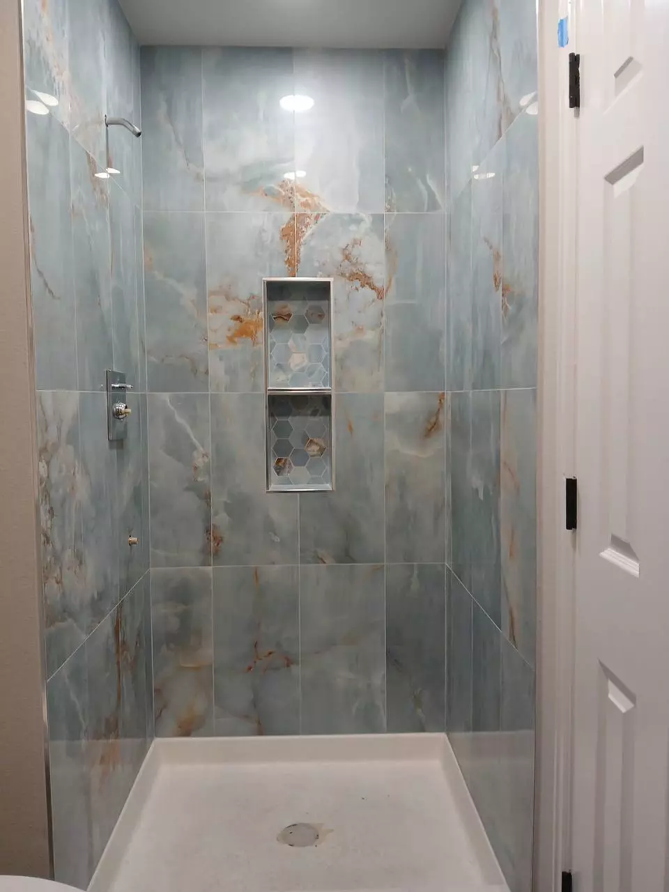 Every project starts with an on-site visit and measurements. We help you choose tile size, pattern, grout color, and trim pieces to match your style and budget.